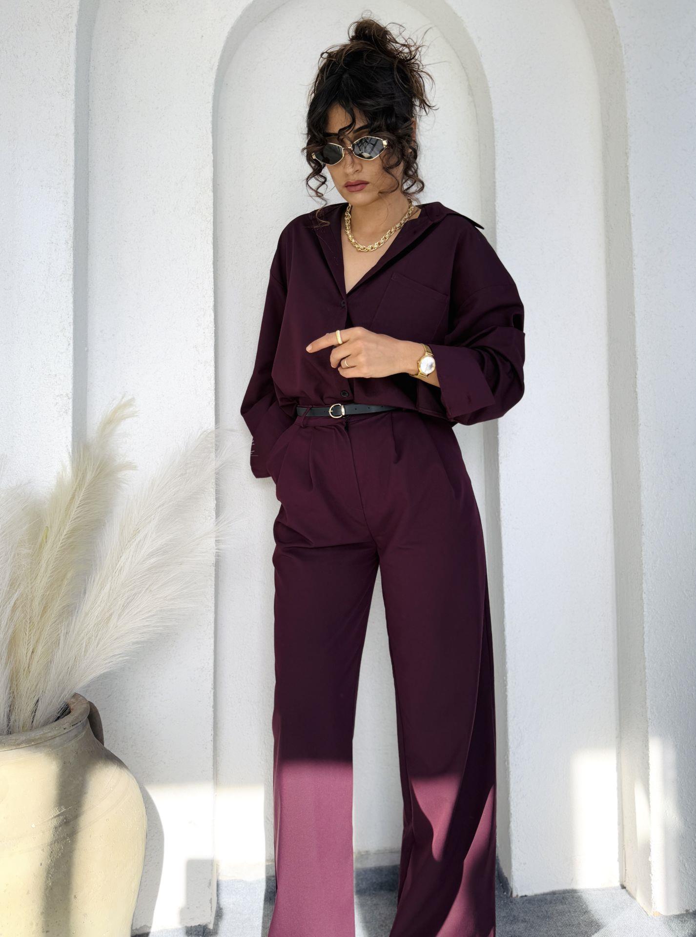 Koyu mürdüm renk Premium doku gömlek oversize kesim uzunluk S beden için omuzdan aşağı 80cm -3+3
