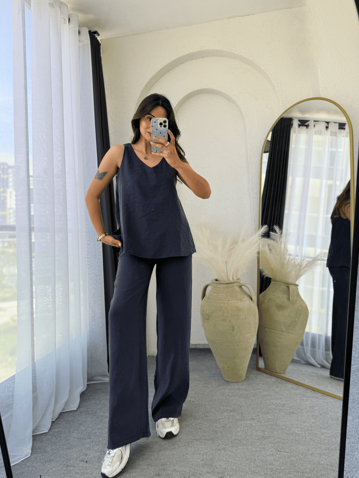 tencel palazzo takımı, hafif ve nefes alabilir kumaşı ile gün boyu rahatlık sağlar. Şık ve modern tasarımı sayesinde günlük kombinlerinizle mükemmel uyum sağlar.Yaz mevsiminde tercih edebileceğiniz bu takım, şıklığı ve konforu bir arada sunar.