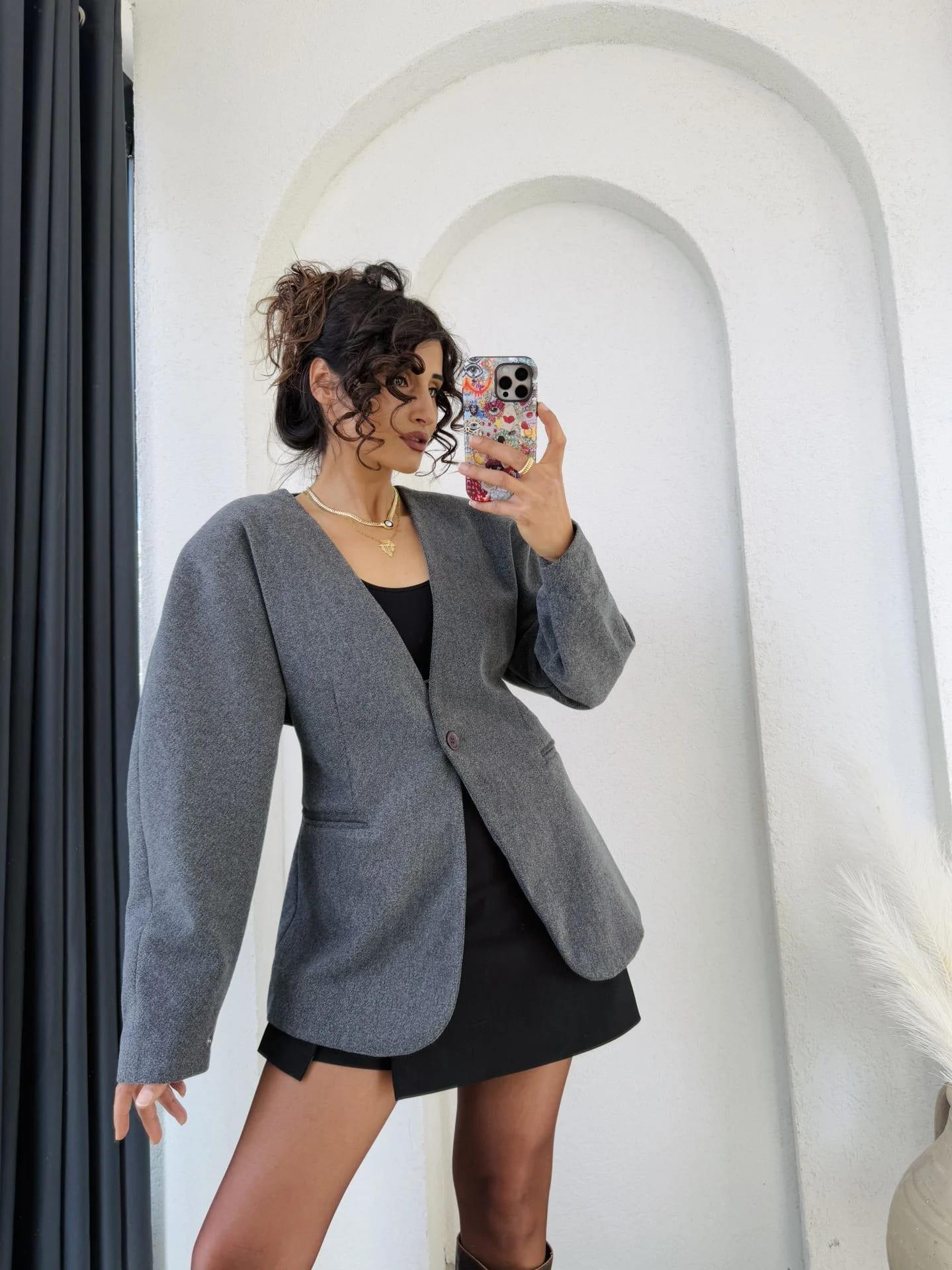 Belden Oturtmalı Kaşe Blazer Antrasit