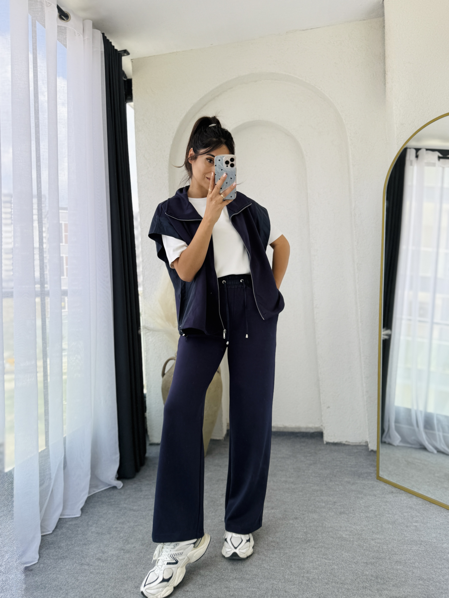 fermuarlı sweat yelek kollar paraşüt kumaş beli ayarlanabilir lastikli önden fermuar kapamalıdır