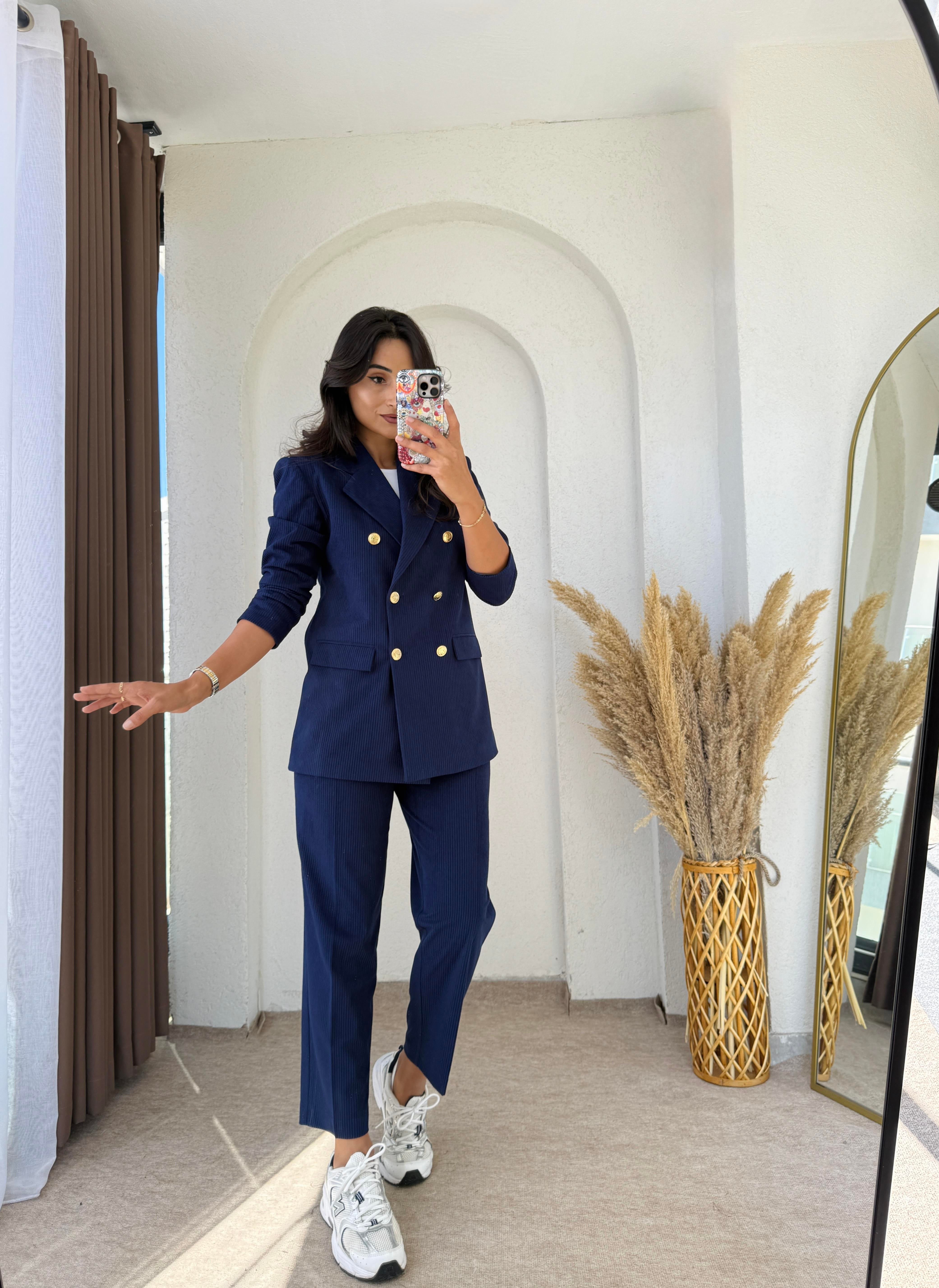 Ceket üzerindeki gold düğmeler tasarıma lüks bir dokunuş katarken, takımın tamamı özel günlerde ve akşam davetlerinde fark yaratmak isteyenler için mükemmel bir tercihtir.Ürün özellikleri⬇️