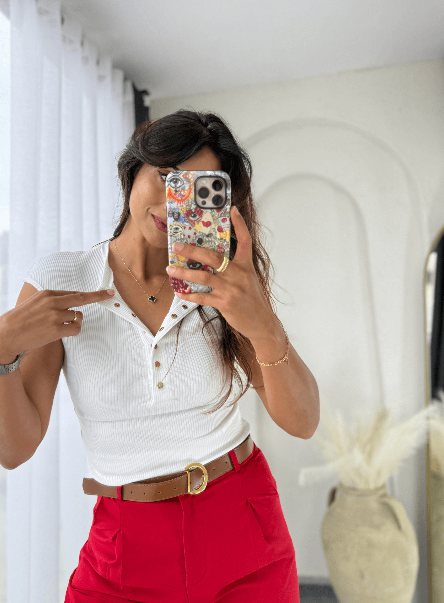 Dilvin Gold Düğmeli Bluz Beyaz