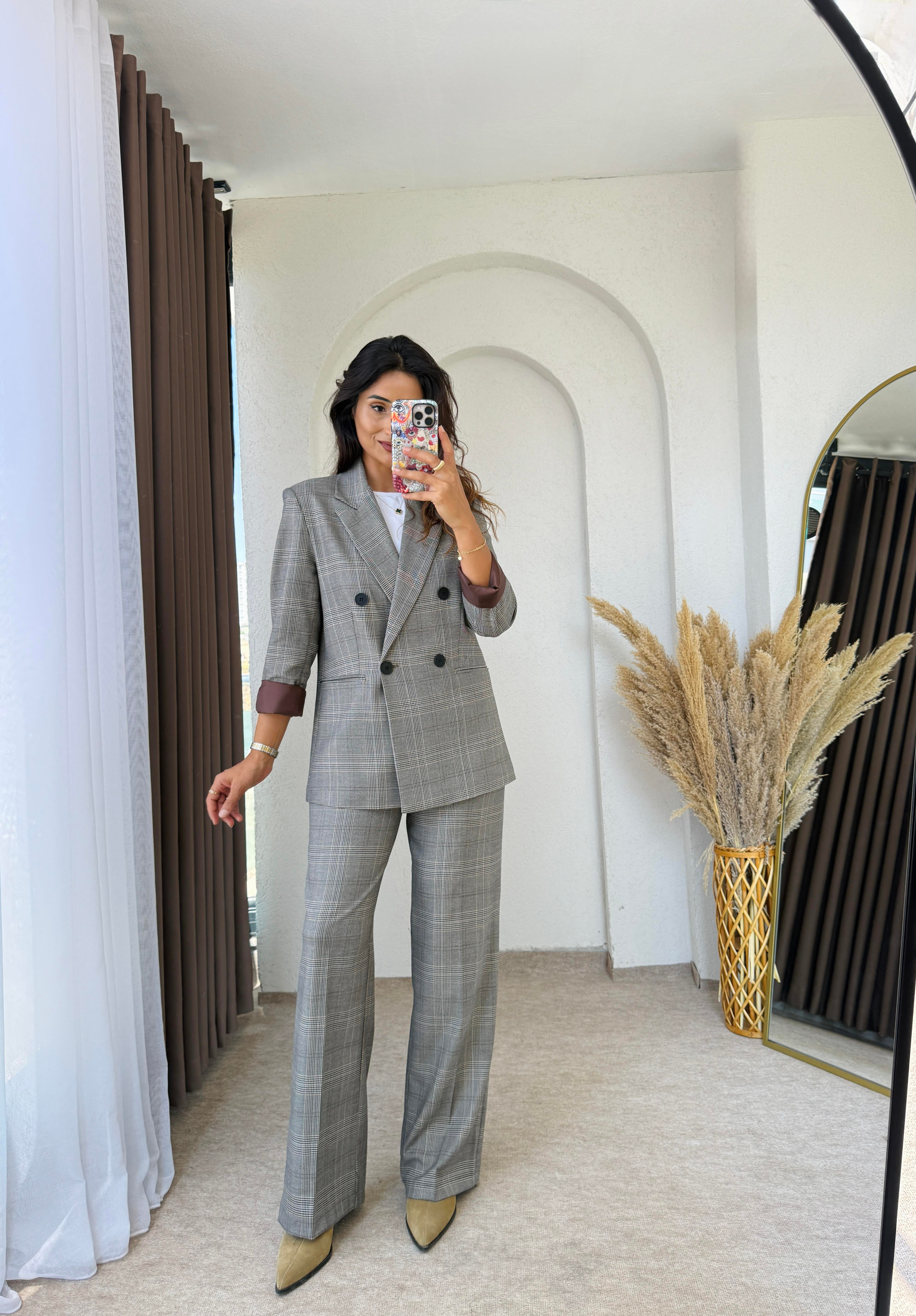 blazer oversize kesim vatkalı kruvaze model iç astardı saten acıkahve renktir