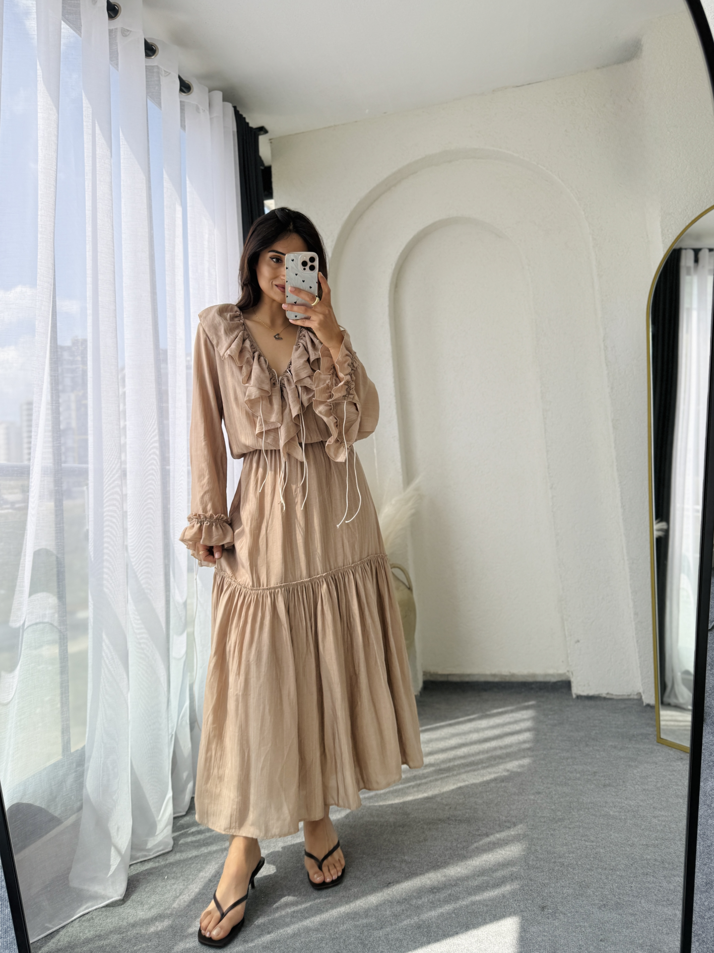 Bu muhteşem tasarım volanlı elbise, zarafeti ve şıklığı bir arada sunuyor. Akıcı kumaşı ve feminen detaylarıyla her türlü davette ve günlük yaşamda rahatlıkla kullanılabilir. Bu elbise, pamuklu kumaşının verdiği konforu sayesinde ütü istemez, dolaplarınızın vazgeçilmezi olmaya aday.