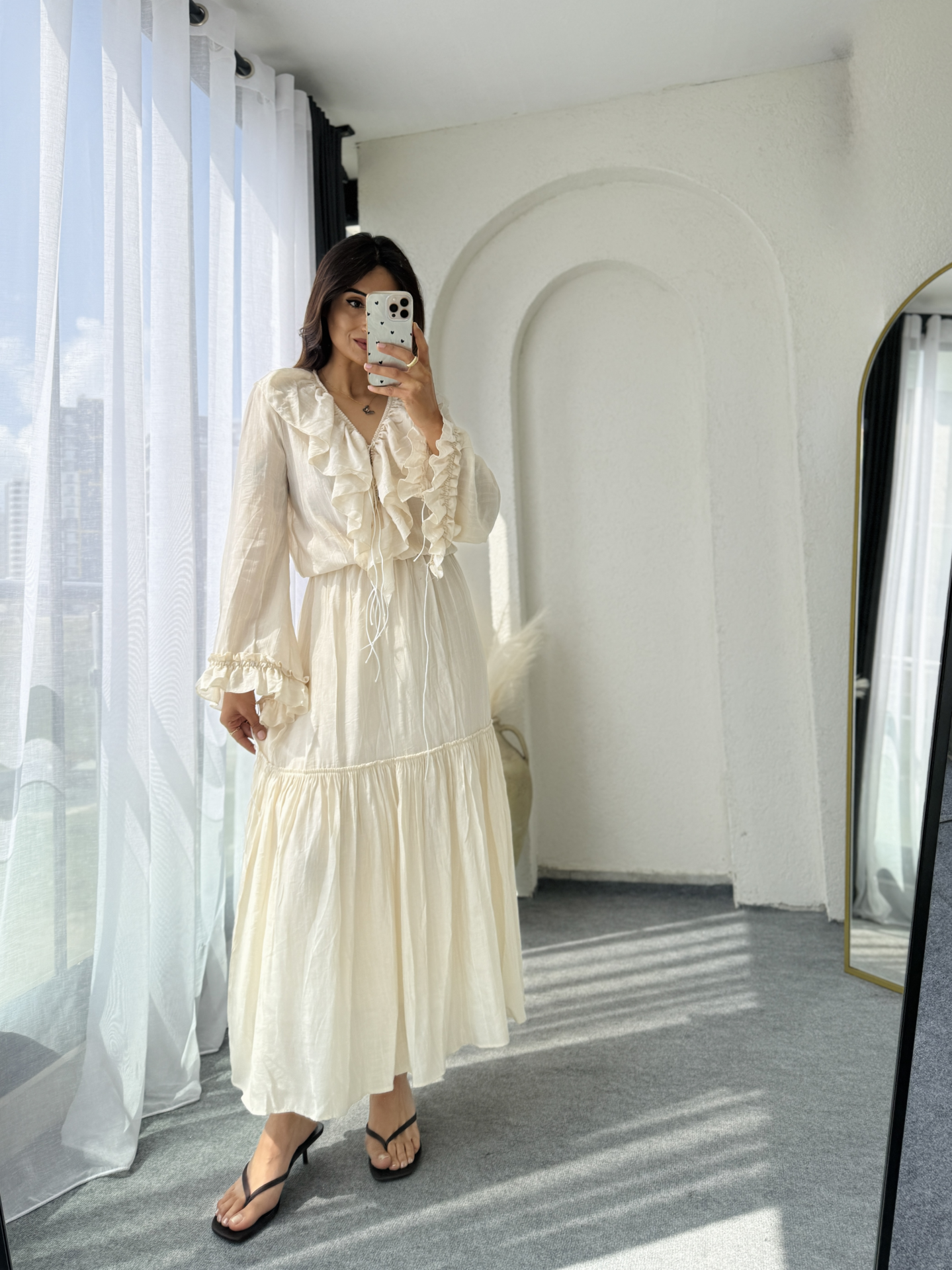 Bu muhteşem tasarım volanlı elbise, zarafeti ve şıklığı bir arada sunuyor. Akıcı kumaşı ve feminen detaylarıyla her türlü davette ve günlük yaşamda rahatlıkla kullanılabilir. Bu elbise, pamuklu kumaşının verdiği konforu sayesinde ütü istemez, dolaplarınızın vazgeçilmezi olmaya aday.