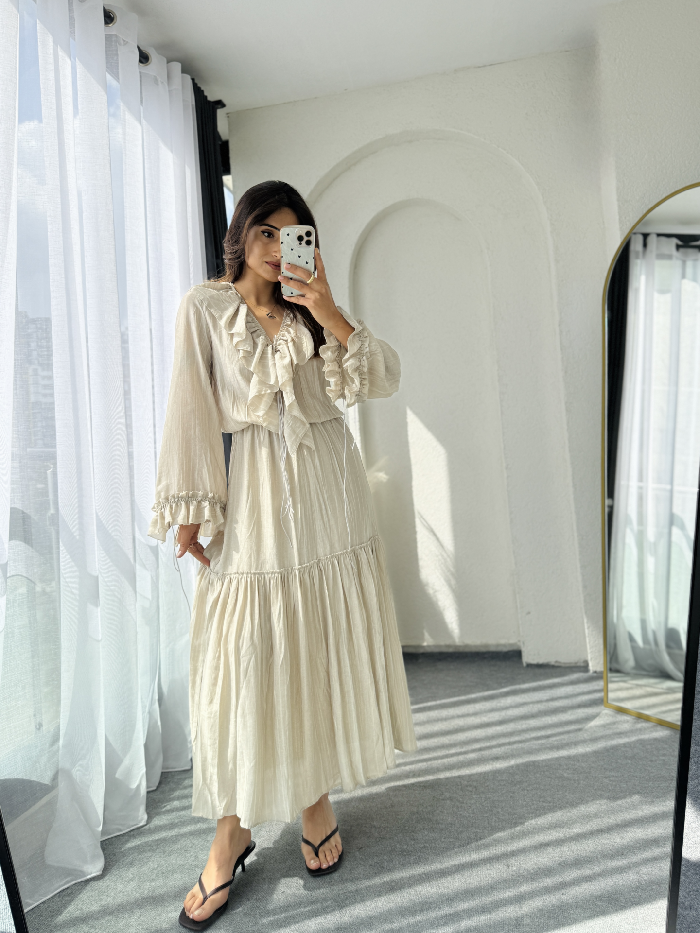 Bu muhteşem tasarım volanlı elbise, zarafeti ve şıklığı bir arada sunuyor. Akıcı kumaşı ve feminen detaylarıyla her türlü davette ve günlük yaşamda rahatlıkla kullanılabilir. Bu elbise, pamuklu kumaşının verdiği konforu sayesinde ütü istemez, dolaplarınızın vazgeçilmezi olmaya aday.