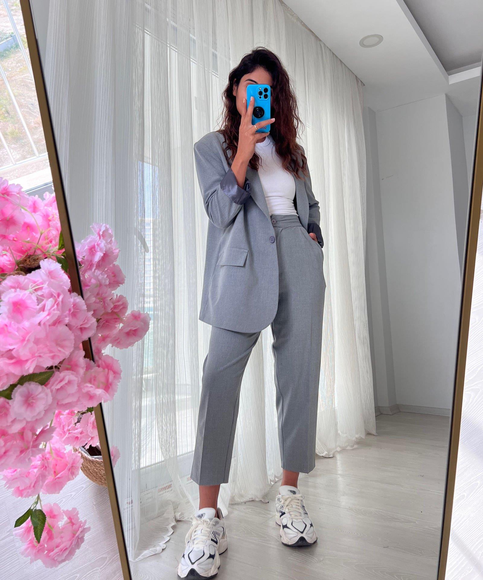 -blazer içi astarlı oversize kesim uzunluk 75 cm