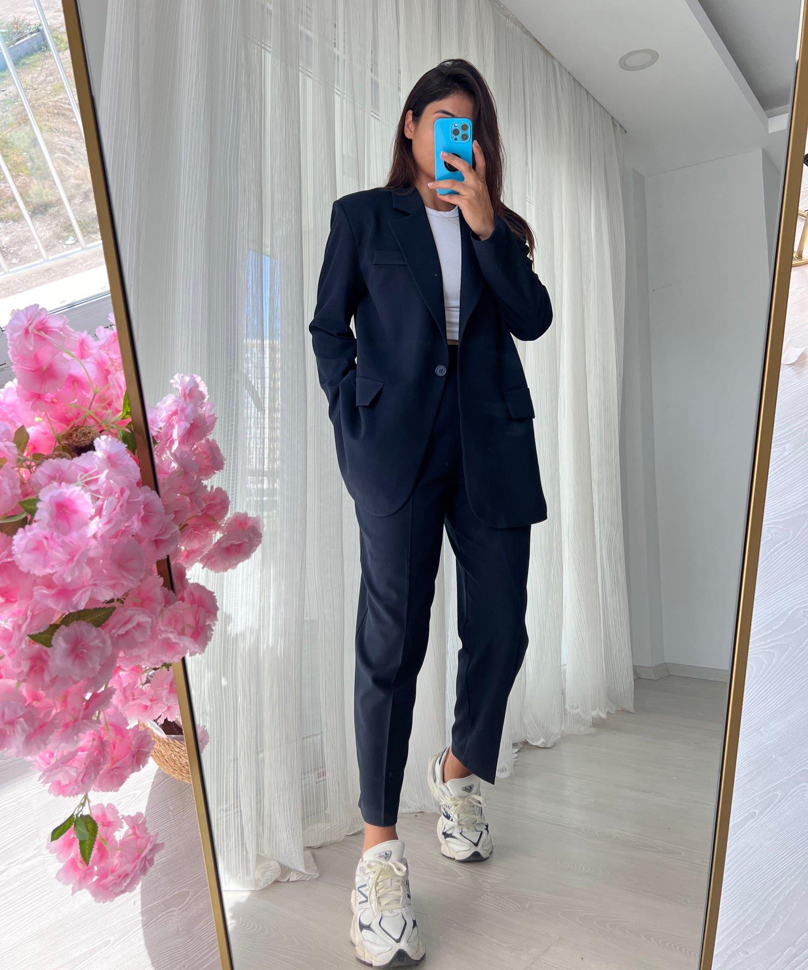 -blazer içi astarlı oversize kesim uzunluk 75 cm