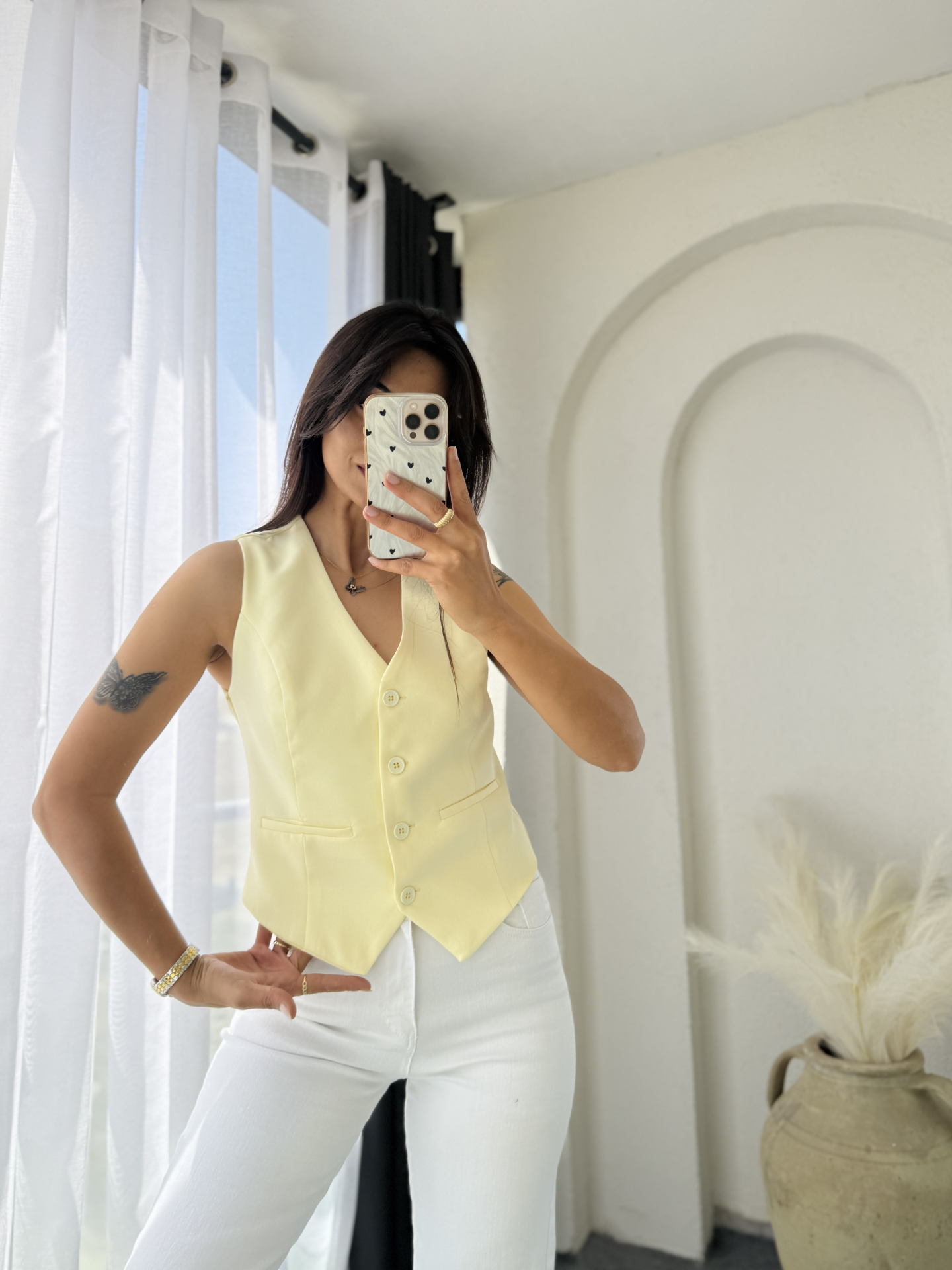 duble atlas kumaş yelek, sezonun trend renkleriyle tasarlanmış bir parçadır. İçi astarlı ve göğüs kısmı hafif bombelidir, böylece hem şık hem de rahattır. Giyçık her şeyle kombinlenir ve sizi sıkmaz. Her stilinize kolayca uyum sağlayacak bir seçenektir.