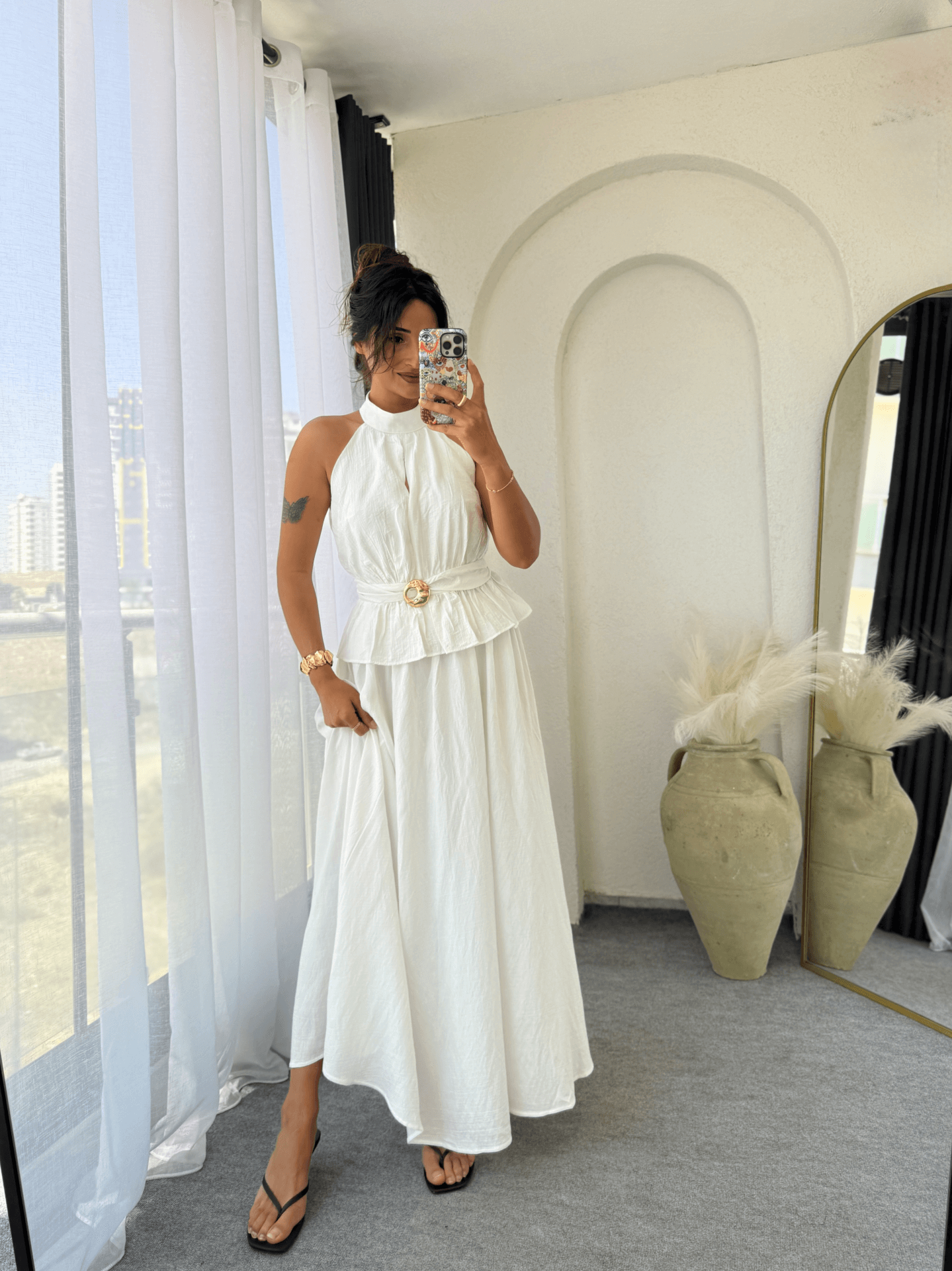 Halter Yaka Etek Takım Beyaz