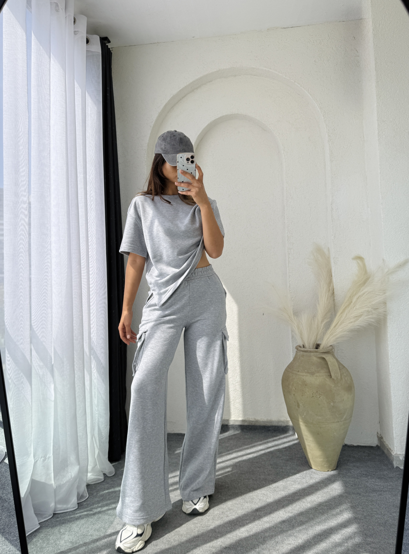 Trend  ve rahat kesim olan  karmelanj oversize tişörtü ve kargo model eşofmanıyla , kaliteli 2 iplik pamuklu kumaşıyla haftasonu için mükemmel bir seçenek. Sade ve şık tasarımıyla her türlü kombinle uyum sağlayarak, spor şıklığı arayanlara ideal bir seçenek. Kaliteyi uygun fiyatla ulaşarak, konforu ve stili bir arada yaşayabilirsiniz.Bu takım tam sana göre