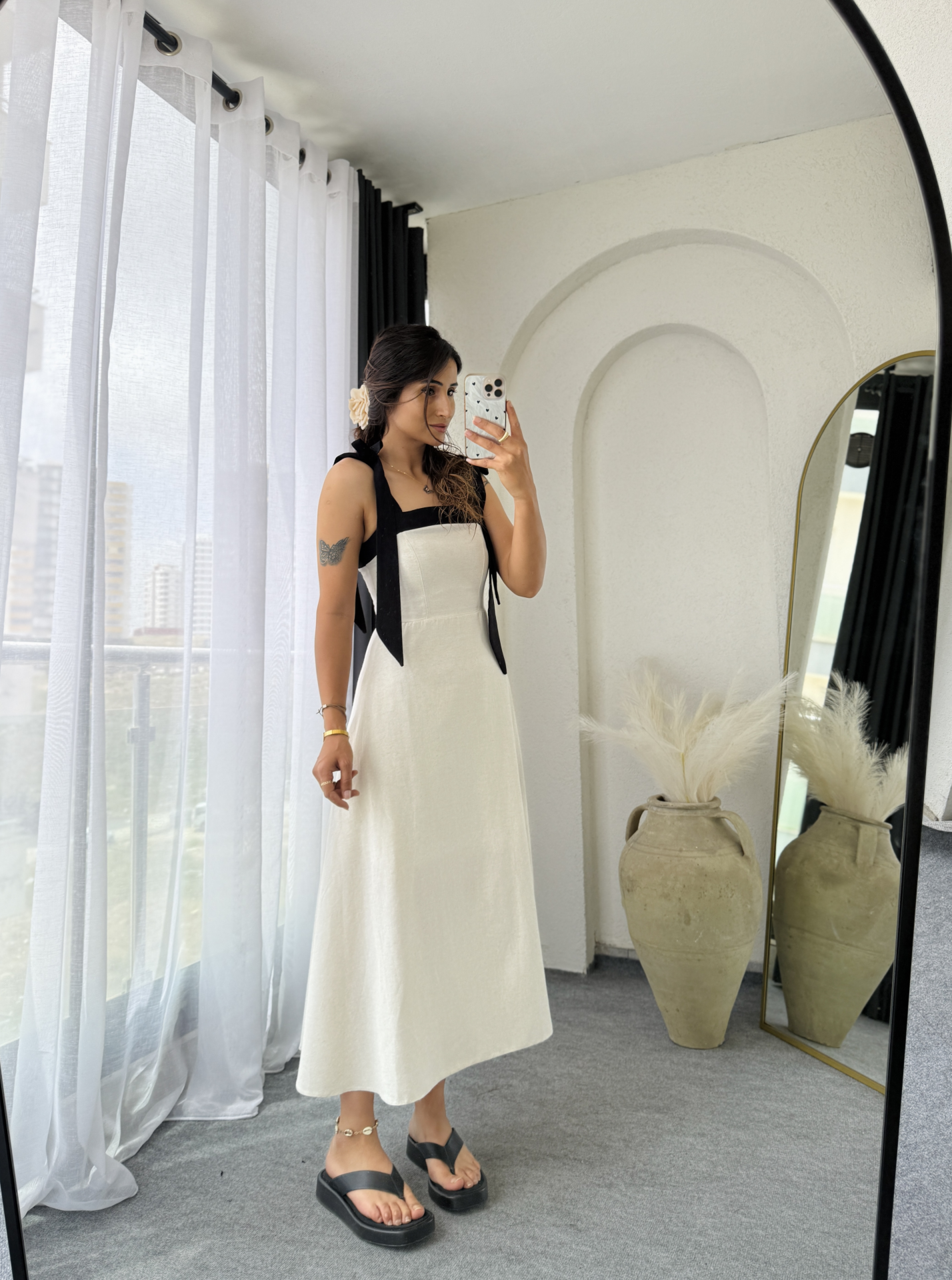 keten kumaşa sahip olan kloş elbise, doğal ve rahat bir tarz sunar. Keten kumaşın içi astarlı olup omuz bağlama detayıyla isteğe göre farklı bağlama şekillerine uygun tasarlanmıştır. Ayrıca kloş modeli sayesinde rahat hareket etmenizi sağlarken terletmez özelliğiyle de dikkat çeker.