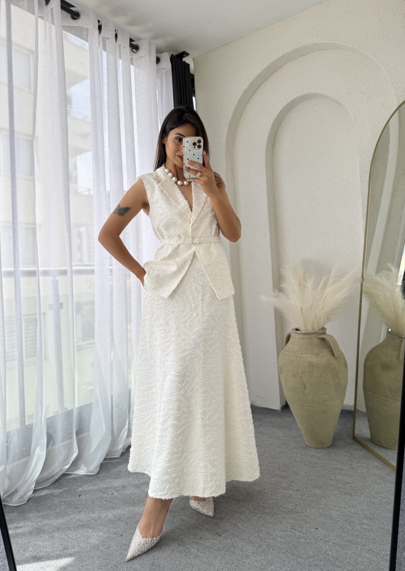 pamuklu kumaştan üretilmiş muadil kabartmalı etek takımı, hem şık görünümü hem de rahatlığı ile dikkat çekiyor. Yüksek kaliteli malzeme ve detaylı işçilik ile tasarlanmış bu takım, her özel gününüzde sizi mükemmel bir şekilde tamamlayacak. Şıklık ve konforu bir arada arayanlar için ideal bir seçim.