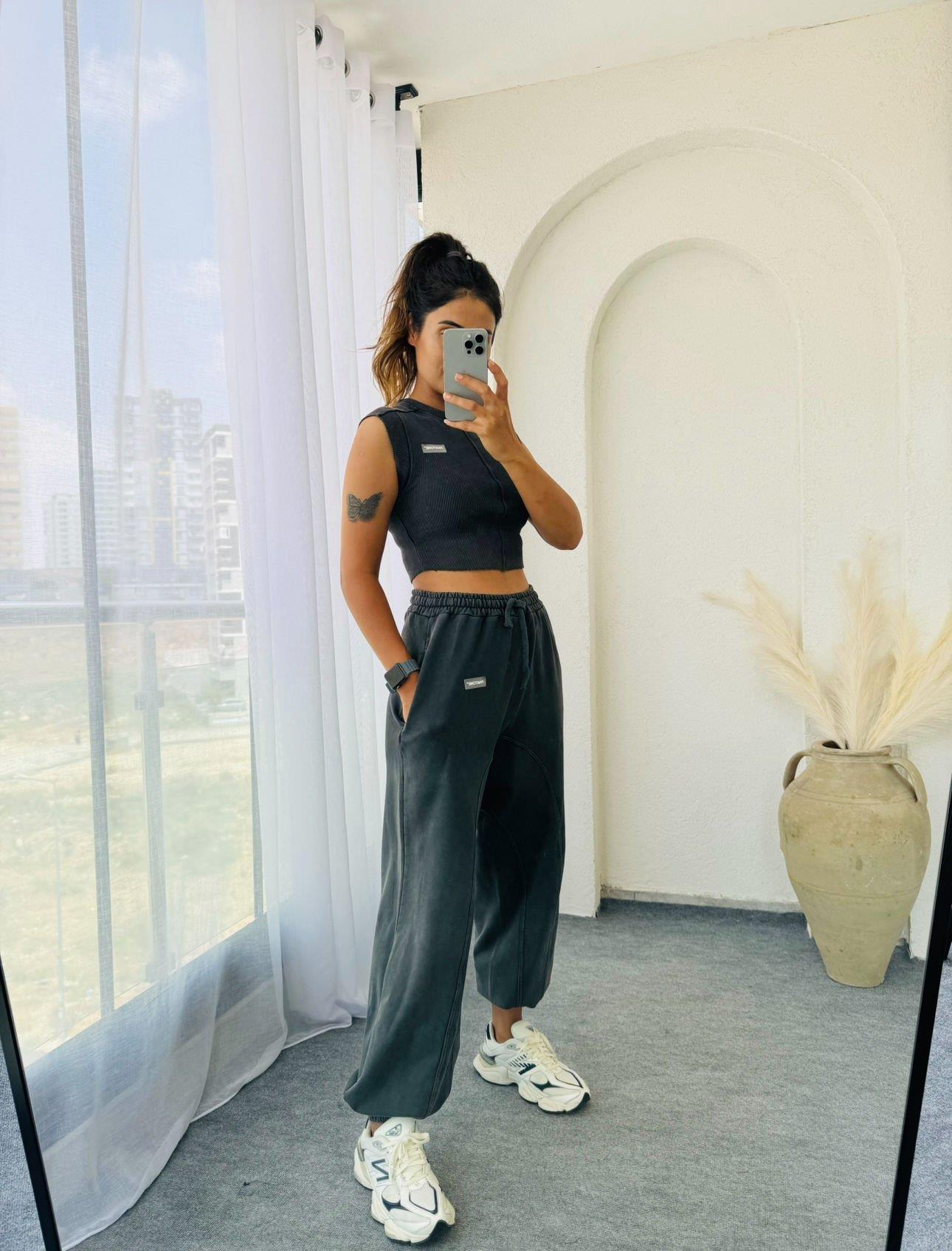 -alt şalvar kesim paça lastikli yüksekbel cepli