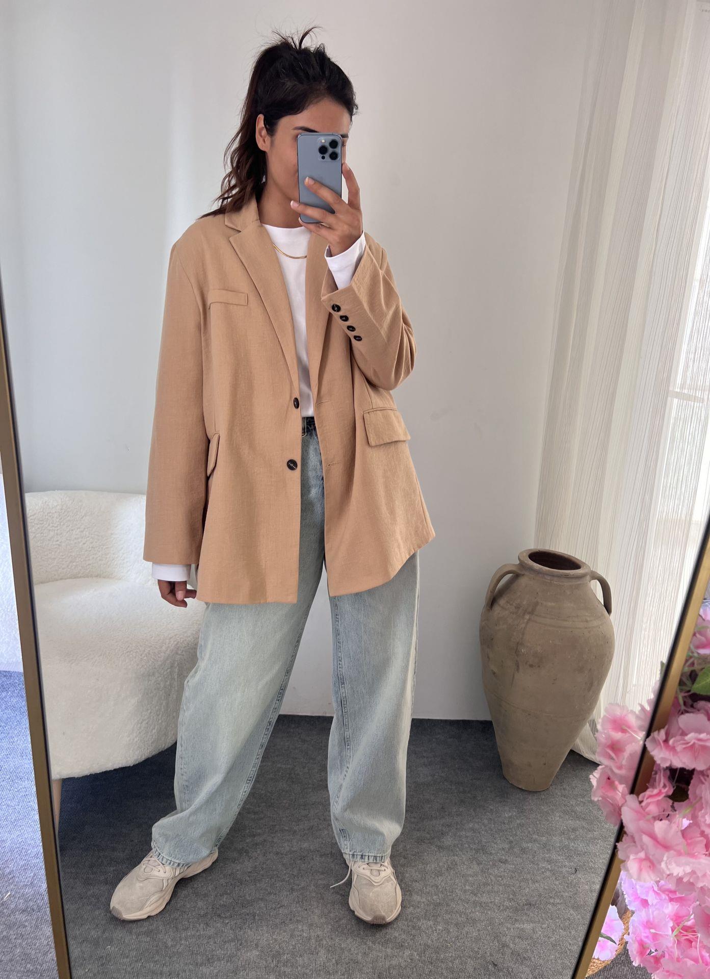 OVERSİZE KETEN BLAZER SÜTLÜKAHVE