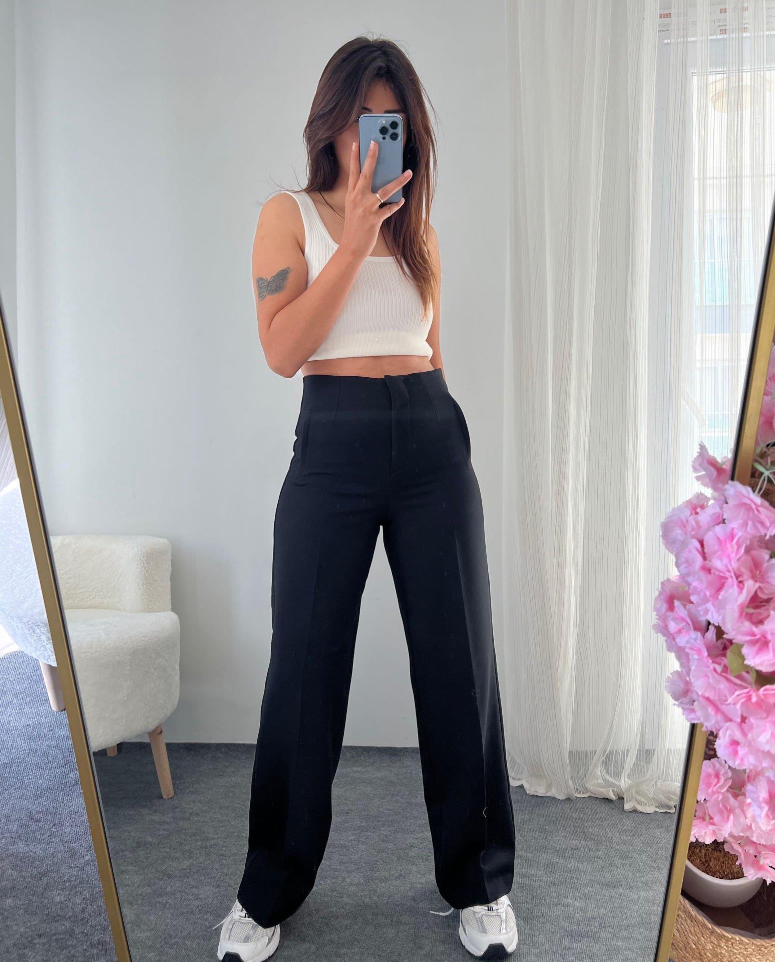 full yüksek bel fermuar kapamalı içte gizli düğmeli