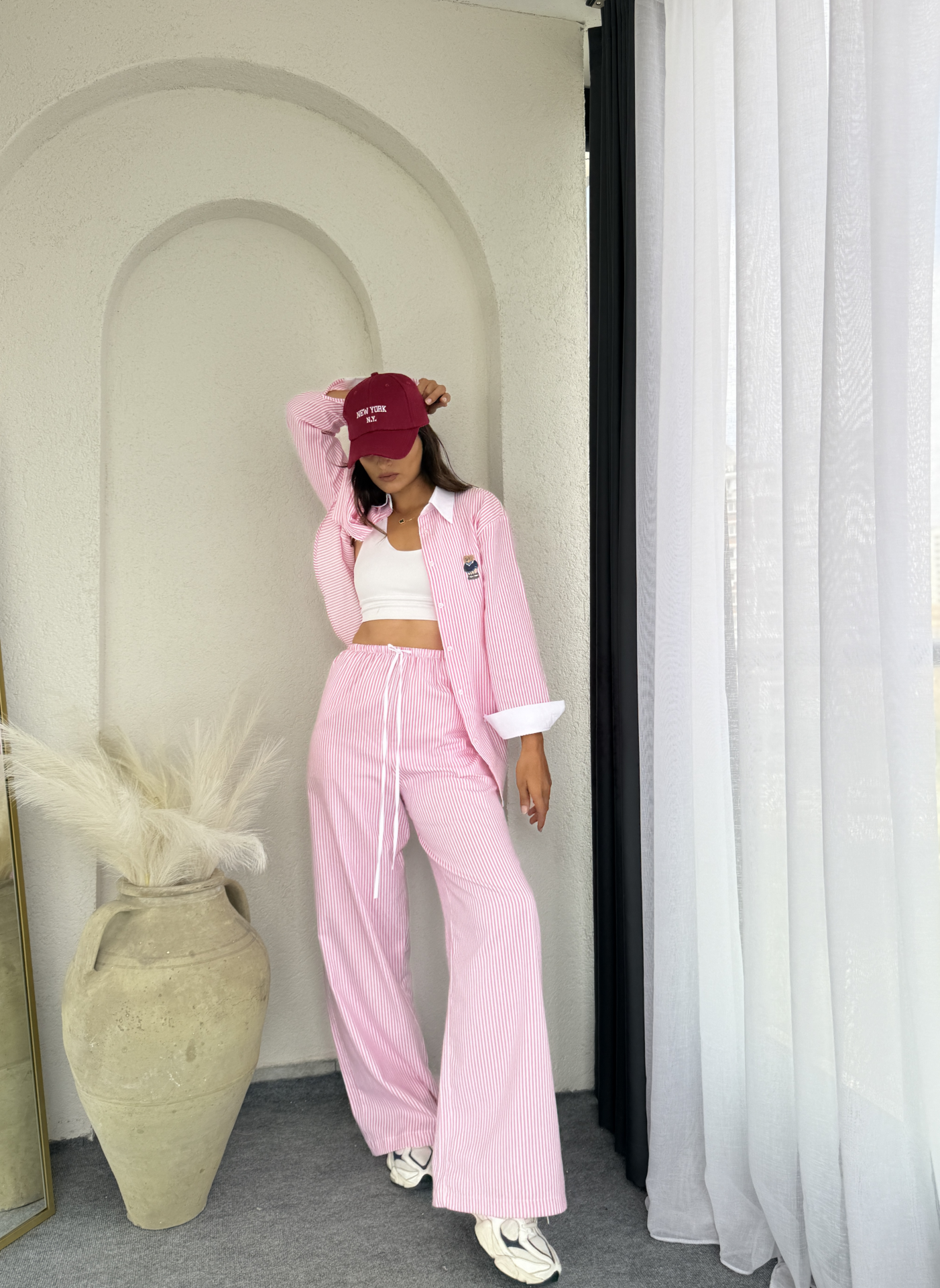 Pinterest çizgili gömlek takımı, zarif ve şık bir görünüm sunar. Yumaşak dokulu Koton kumaştan yapılmış olan bu takım, rahat ve konforlu bir kullanım sağlar. Geniş kalıbı ve dökümlü yapısı ile salaş görünüm sağlar  oversize gömlek ve cepli duble yüksekbel pantolonu  ile tarzınızı tamamlayabilirsiniz. Beyaz manşet detayları ve gömlek yaka ile de şıklığınızı ön plana çıkarabilirsiniz.