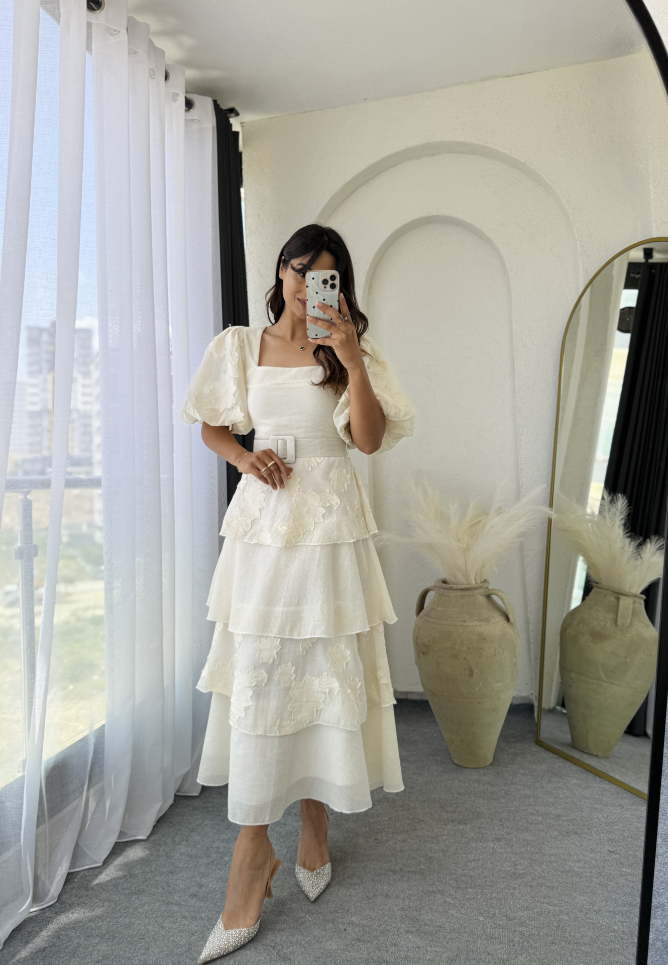 premium kalite pamuklu dantel takım, zarif ve şık bir görünüm sunuyor. Hacimli balon kolları, kendine ait kemer detayıyla tamamlanan bu takım, kat detaylı dantel işlemeleriyle dikkat çekiyor. Şık ve zarfiliğiyle Herhangi bir özel gün veya davet için mükemmel bir tercih olacaktır.