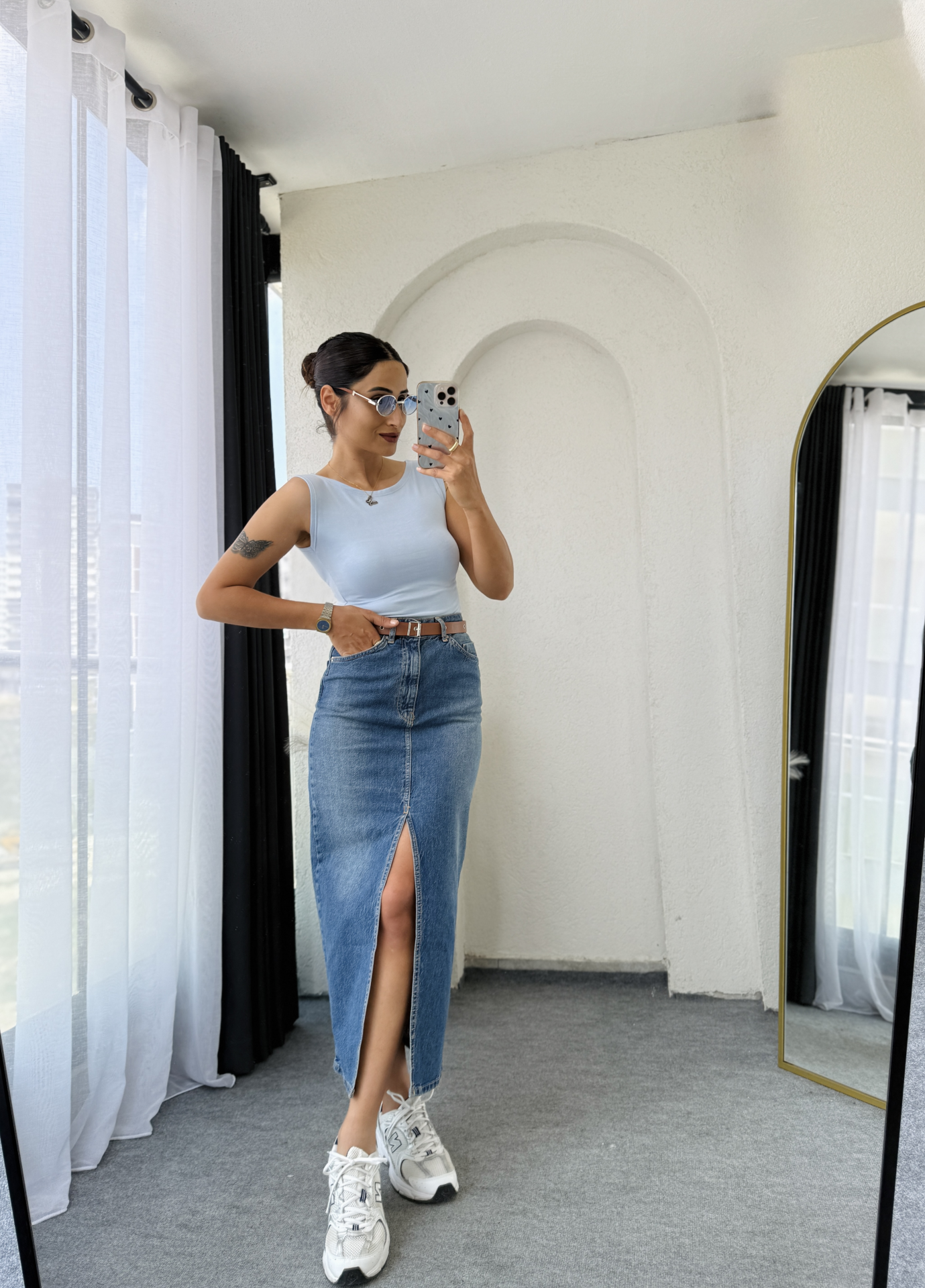 Orjinal marka yüksekbel önü yırtmaçlı kot etek, hem spor hem şık tarzıyla dikkat çekiyor. Günlük kullanım için ideal olan bu etek, rahatlığı ve şıklığı bir arada sunuyor. Klasik kot eteklerden farklı olarak yırtmacı ve duble  yüksekbel tasarımıyla da öne çıkıyor. Tarzınızı yansıtmak için ideal bir seçim